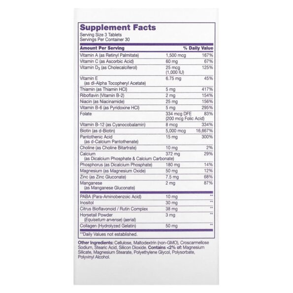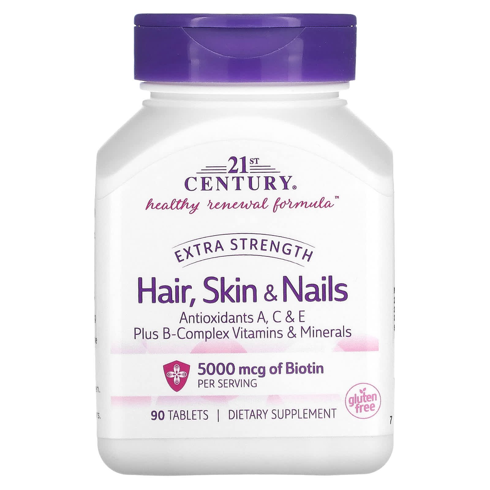 يعمل منتج التقوية المضاعفة للشعر والبشرة والأظافر من ®21st Century الذي يمتاز بتركيبة ™Healthy Renewal Formula على المساعدة في دعم جمالكِ الطبيعي من الداخل. يُعد البيوتين، وفيتامين أ، وفيتامين جـ، وفيتامين هـ من المغذيات اللازمة لتعزيز لمعان الشعر، وتقوية الأظافر، والتمتع ببشرة نضرة.