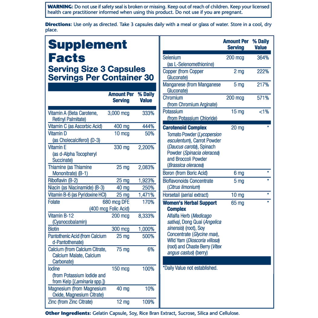 - بالإضافة إلى أكثر من 21 نوعًا من الفيتامينات والمعادن المختلفة، حيث يحتوي هذا المنتج على مكونات لتعزيز صحة المرأة طوال حياتها.